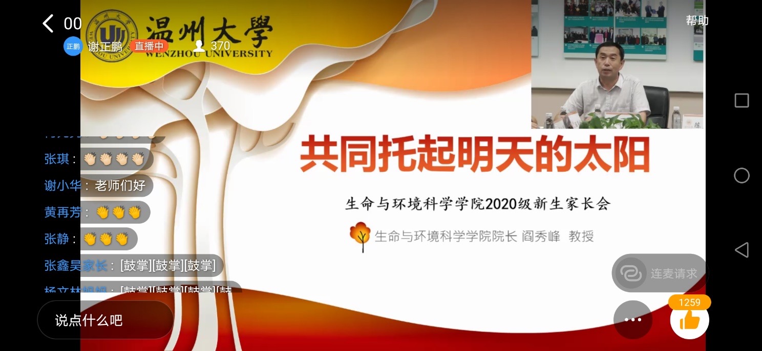 盛夏已过,金秋已至,在当前疫情防控大背景下,为更好的凸显三全育人中家校共育理念,强化家校共育共管理念,9月22日晚上,公司通过钉钉线上直播的方式召开了2020级新生家长会,公司全体领导班子,2020级各班班主任及全体辅导员出席了此次会议,会议由公司党委副书记赵崇峰主持。