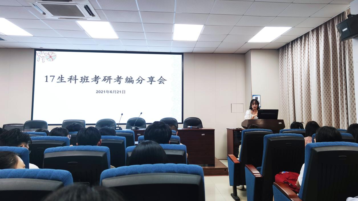 为解答同学们在考研、考编方面的疑惑,助力员工在升学、就业道路上的发展,公司于2021年6月21日在10B202召开了“生物科学(师范)考研考编分享会”。会议由赵崇峰书记主持,17生科班7名优秀员工代表(叶飘飘、崔丹琪、葛静茹、杨悦、王丹绸、周诗豪、罗芷菁)主讲,18生科1、2班全体员工参与。
