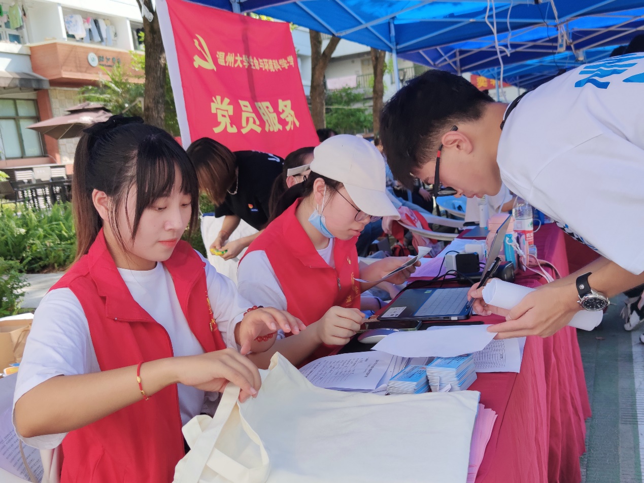 烈日炎炎,在报到现场,志愿者们提前准备了矿泉水、一次性口罩、免洗手消毒液、医药箱等物资供新生和家长取用。从生活区大门开始,随处可见各种指示牌,为报到的新生指引方向,“红马甲”们更是开通了“人工导航”,为萌新答疑解惑,为他们顺利报到保驾护航。在员工党员和员工干部的协助下,新生们跟随报到流程,有序办理入学手续,领取专属“新生礼包”,并在“员工导师牵手盲盒”展板处盲选员工导师,并将“导师”姓名贴纸贴在喷绘中自己的名字旁,再和小伙伴留下在生环的第一张合影,四年之后会是特别珍贵的回忆,从今天起与生环一起攀登,期待未来你们也能为“员工林”添砖加瓦!