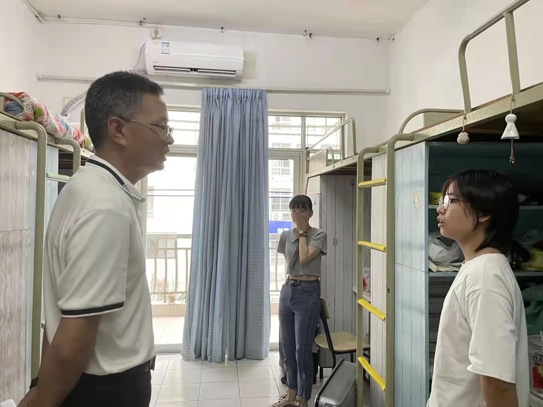 “你们以前都有住校经历吗?”“刚来公司有什么不适应的地方吗?”领导和老师们与同学们亲切交谈,了解了他们的报到及生活情况,让新同学们倍感关怀。在走访过程中,领导老师和学长学姐们对于寝室网络、食堂就餐、出行交通等方面问题进行了耐心详细的解答和当场帮助。