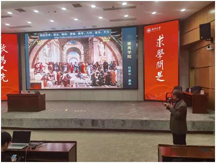 卢宝荣教授于育英图书馆二楼报告厅为师生作了“艺术、科学研究与创新思维”为主题的精彩讲座。本次讲座内容围绕思维方式的训练及启迪展开,从科学研究及艺术创作的角度带领听众“判天地之美,析万物之理”。