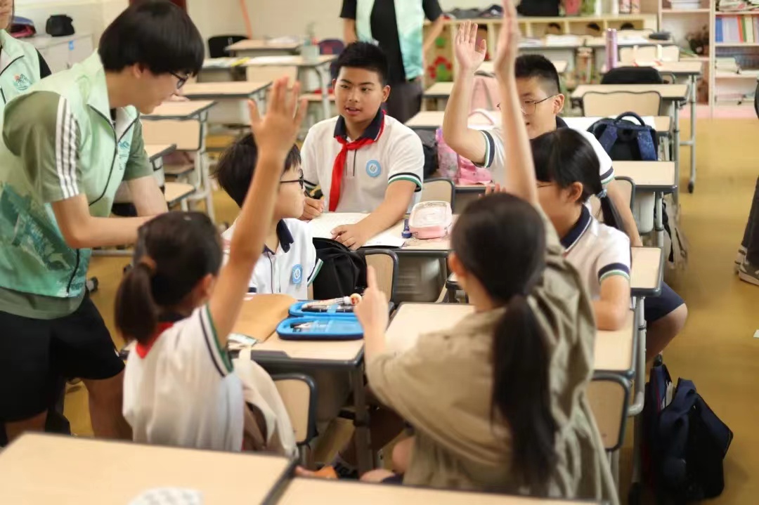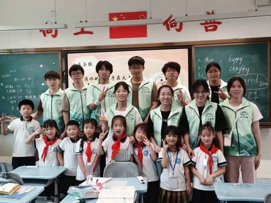 2023年7月10日下午1点,永利集团官网文达清源暑期社会实践队成员在南校门口集合。在陈维洁同学和陈德波同学的带领下,前往茶山附属实验小学进行第一次暑期授课实践。