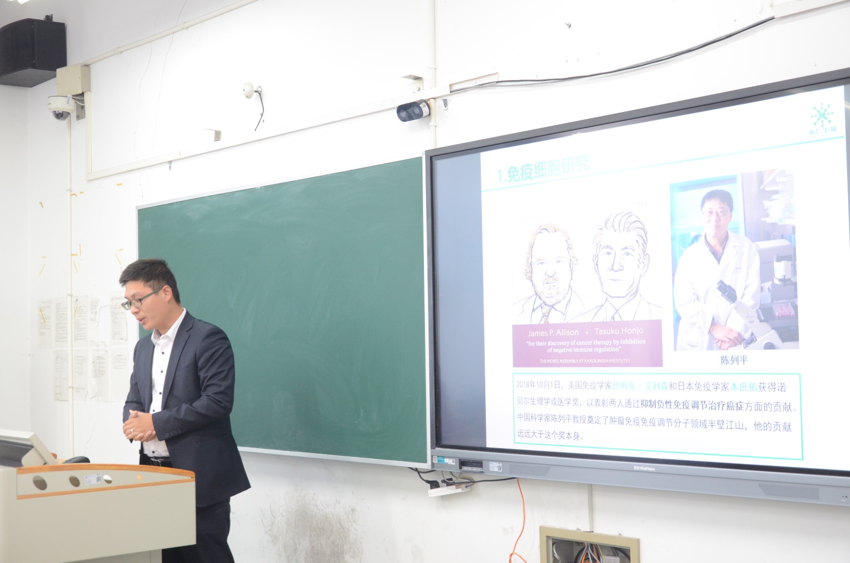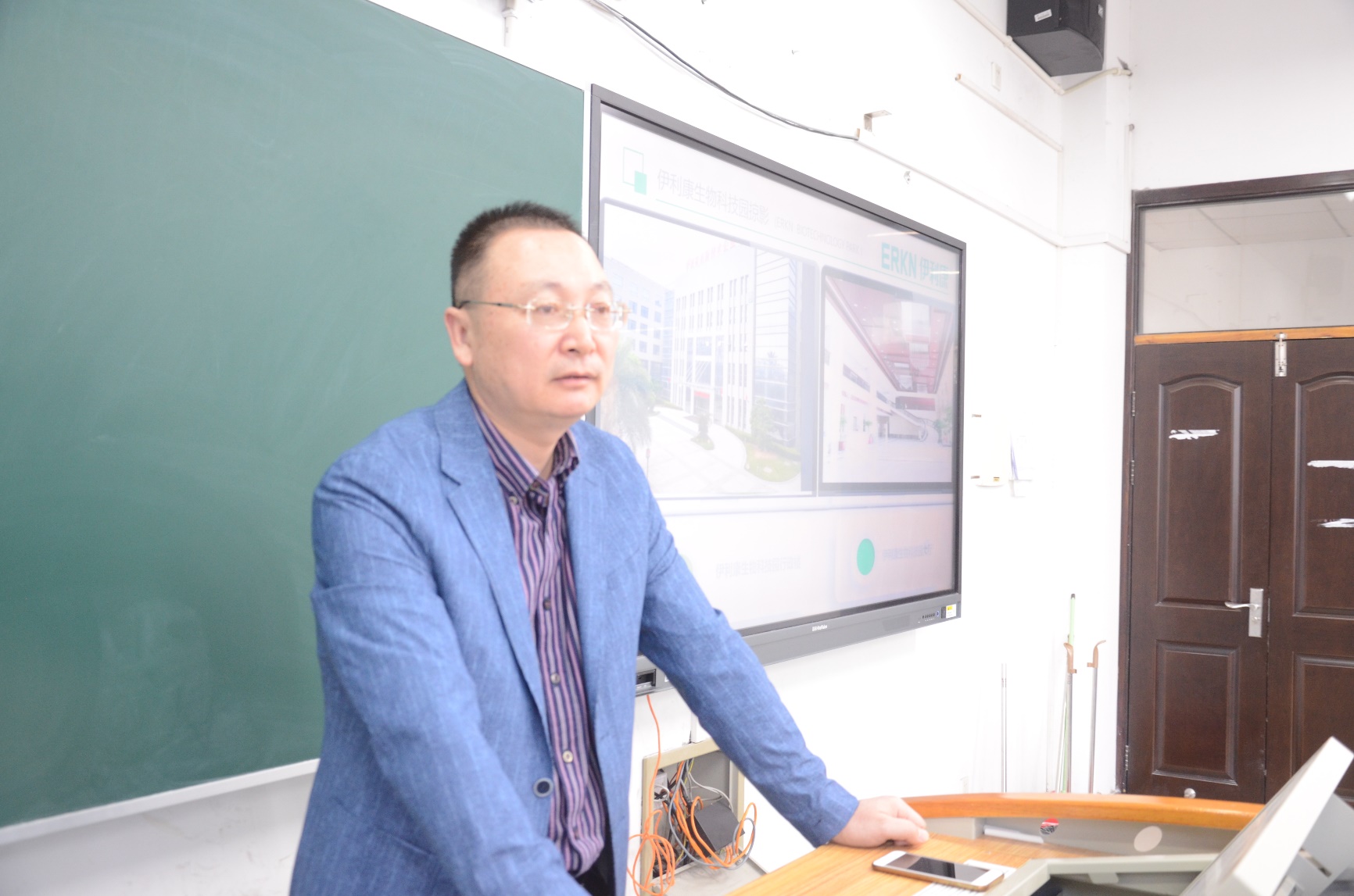 首先,蔡克城老师代表伊利康公司,对公司的产物与薪资待遇进行了介绍,展示了任职中的活动室,同时讲述了公司成立之初的经历和成立人拥有的坚定信念。他介绍到,公司各个部门的照片、实习生基地、各种实验装置,都有技术人员专门监督。最后,他将公司与生物制药放在一起分析,提出了社会对老人治疗、社区医疗工作的重要需求,展现出制药专业的光明前景,增强了同学们对所学专业的认知度。
