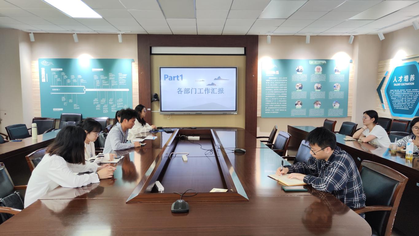 会议伊始,由各部门进行工作汇报。办公室总结了办公室4月份所做的工作,包括优秀员工干部的考核等,表示办公室将继续配合老师和其他部门开展接下来的工作;文体部即将举办摄影大赛、趣味运动会等活动,希望研会成员积极参与;宣传部表示参与了清明行等活动的拍照、写稿、推文等宣传,力求保质保量完成优秀分研会的宣传指标;学术部总结了学术部的三个主要工作:学术报告大赛、考博经验交流会和节能减排的校级比赛;生活实践部核实查寝查出来大功率等违规情况以及进行一些活动的后勤服务,以助活动顺利开展。