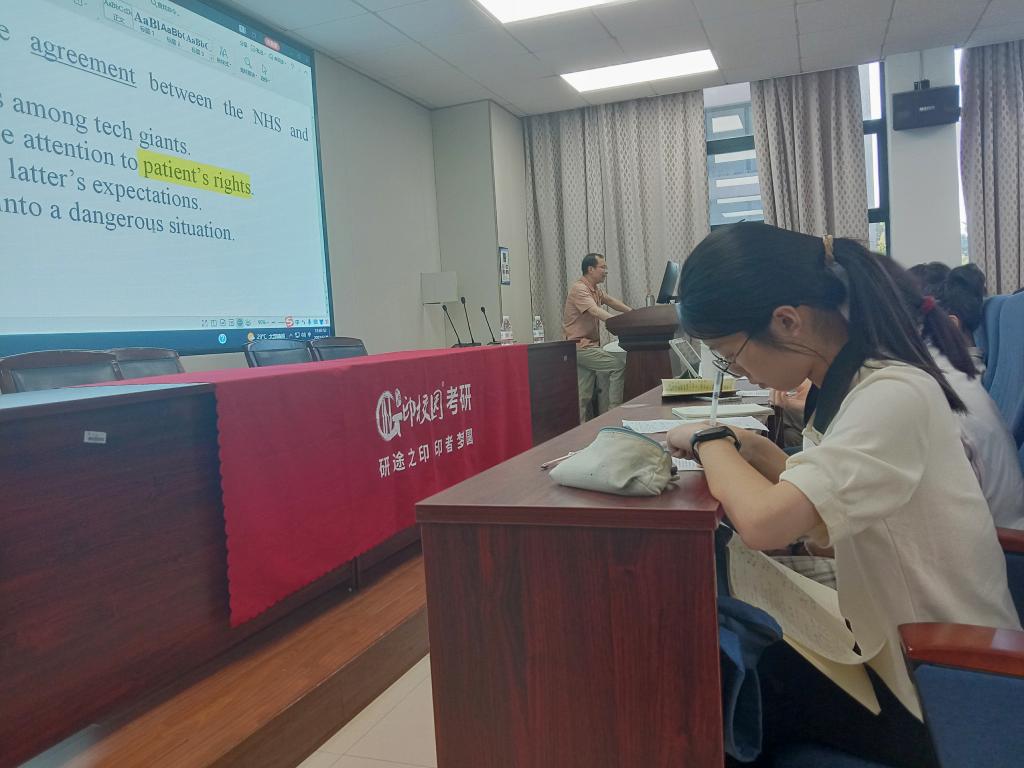 “本次讲座让我受益匪浅,不仅仅是学到了一个个解题技巧,还为我重新打开思路,让我能以系统的角度看待考研英语。”本次讲座现场座无虚席,胡老师语调激越昂扬,同学们热情高涨,收获匪浅。此次讲座的顺利举行有助于公司考研学子明确考研英语备考方向,增强考研信心更好备战。(通讯员:林诗童)
