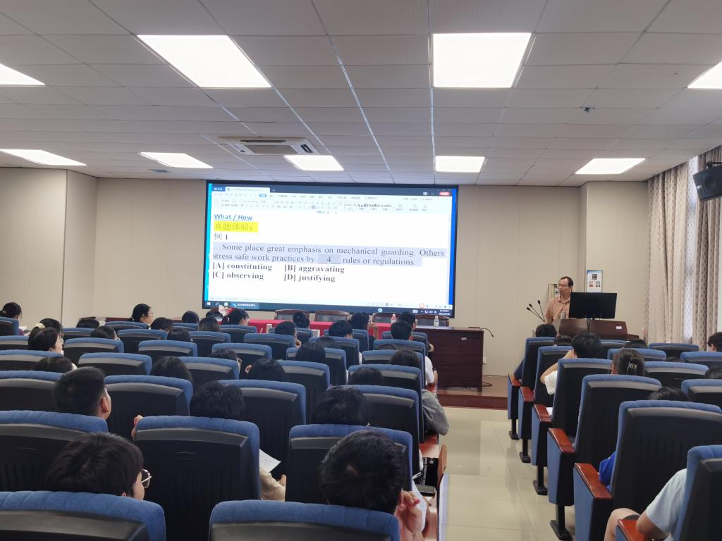 讲座伊始,胡老师向同学们强调了考研英语的重要性,“光过是完全不够的,我们还要考高分,特别是理工科的同学更是要重视英语”,希望同学们提高认识,为考研英语考试做充分的准备。讲座期间,胡老师全面而细致地解析了考研英语大纲以及最新命题规律,结合近几年考研真题为同学们细致剖析了考试的题型、内容及常见考点。胡老师还详细地介绍了考研英语的注意事项。他建议做阅读理解时要先看题目再看文章,带着问题在文章中寻找答案,能起到事半功倍的效果。他还介绍了前后缀记忆、相似单词对比等单词记忆方法,强调要在日常学习中搜集写作亮点,为作文提分。