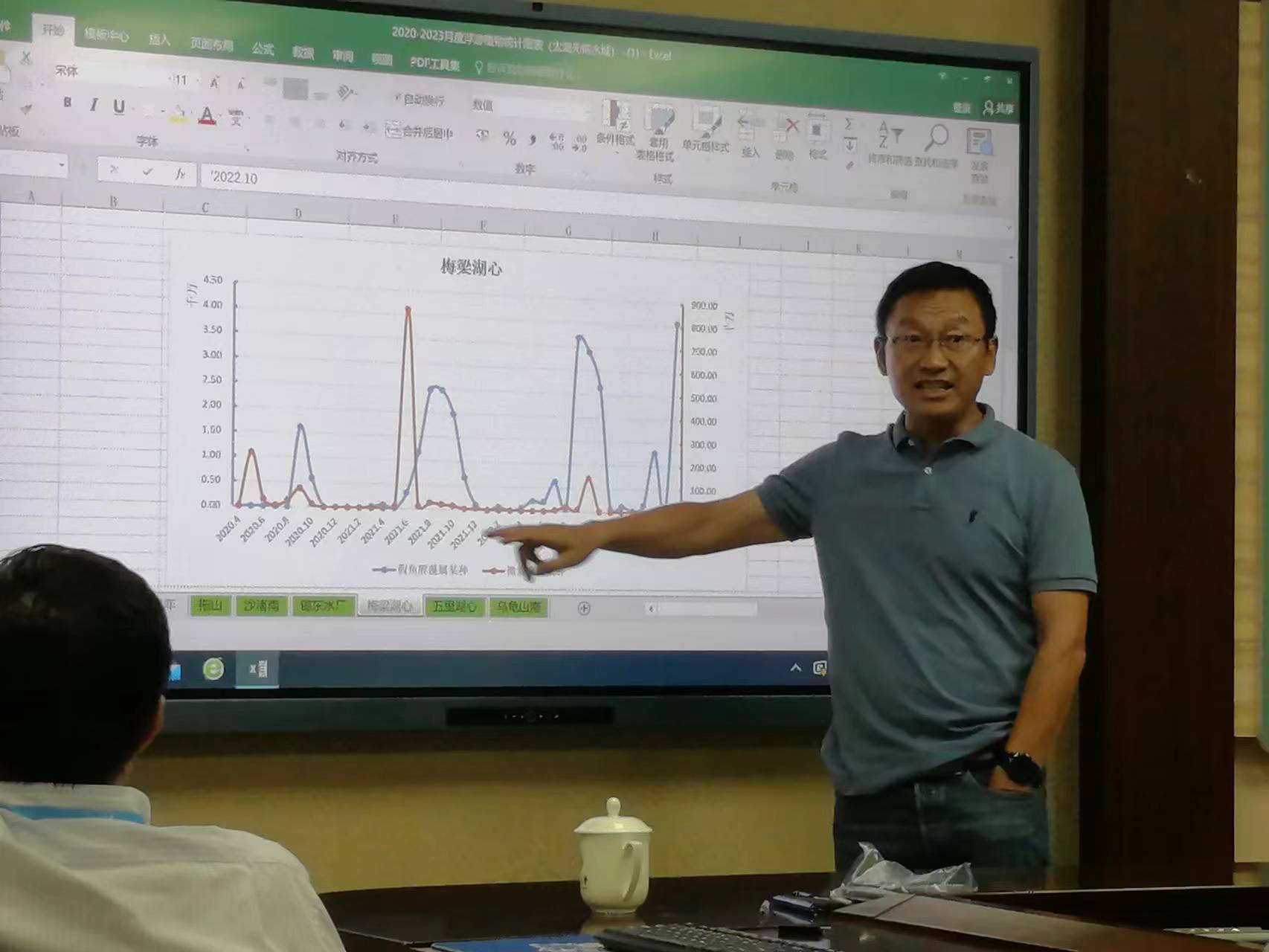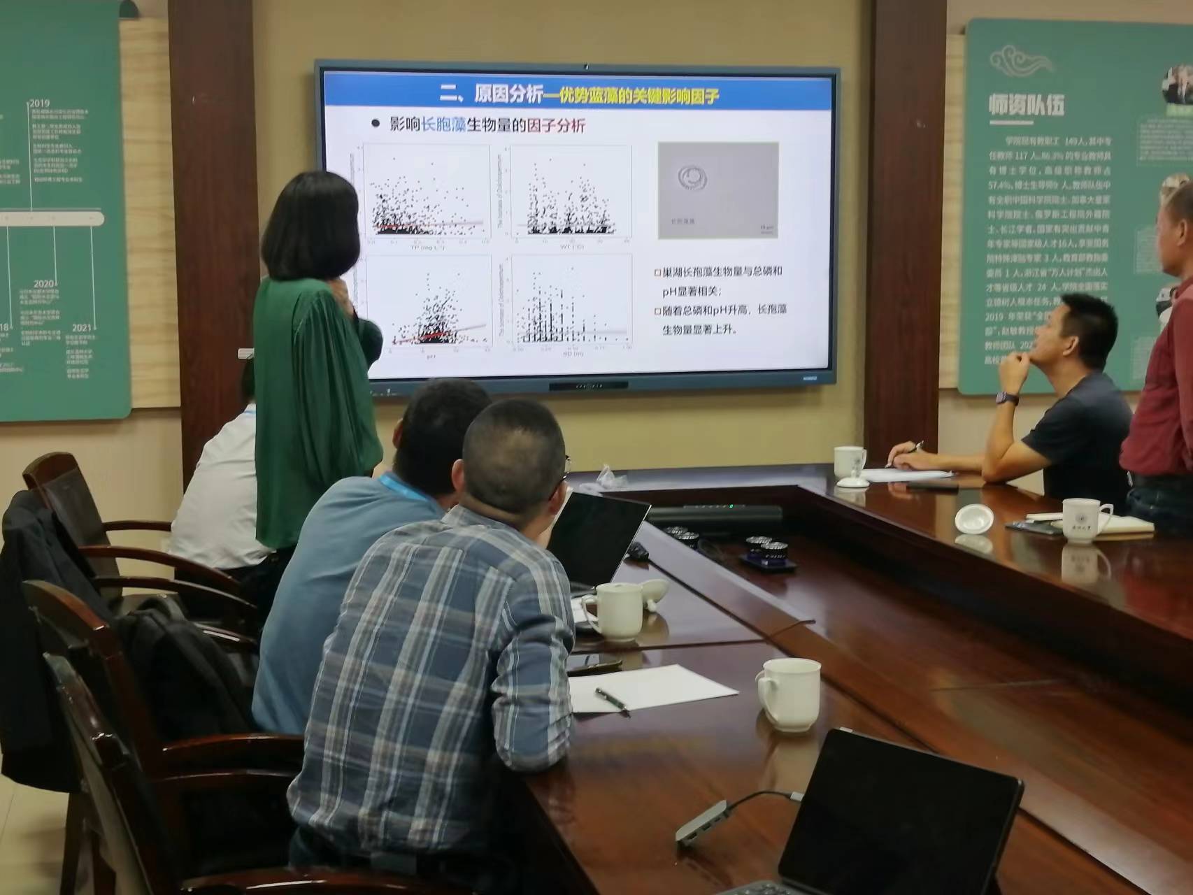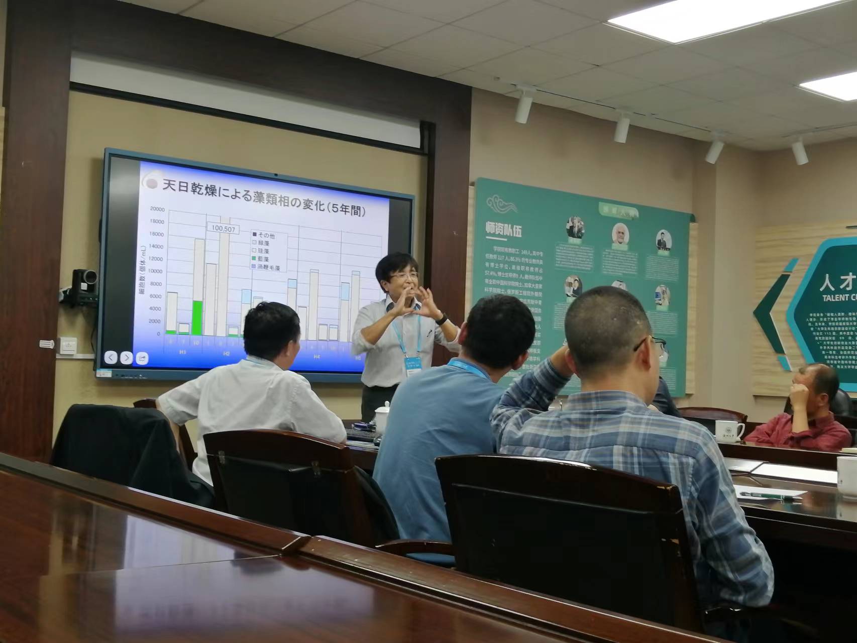 会议伊始,李仁辉教授对太湖蓝藻水华情况做了简要介绍,说明了2023年太湖蓝藻水华异常现象,直到八月份都未出现大面积微囊藻水华,且发现假鱼腥藻大量增加,为会议拉开了序幕。井芹宁教授介绍了日本湖泊治理的案例和经验,并提出了氮磷比、水温、溶解氧和光照等可能是引起蓝藻水华异常的原因。随后史小丽研究员介绍了近年来巢湖蓝藻水华情势,主要由长孢藻和微囊藻演替逐渐转变为假鱼腥藻和微囊藻优势。宗兵年教授对太湖的微囊藻和假鱼腥藻的生物量变化趋势进行了分析,指出微囊藻和假鱼腥藻细胞丰度呈现此消彼长的变化模式,由此提出假鱼腥藻可能影响了微囊藻的生长。针对假鱼腥藻与微囊藻的共存格局,与会专家争先恐后地走上台,展示自己的数据,亮明自己的观点。综合多种因素,与会专家倾向于认同由于气候因素如干旱、营养盐降低等不适宜微囊藻生长,而适宜假鱼腥藻生长,最终导致假鱼腥藻丰度升高。但更加科学的推断,则需要开展围格原位实验进行验证。