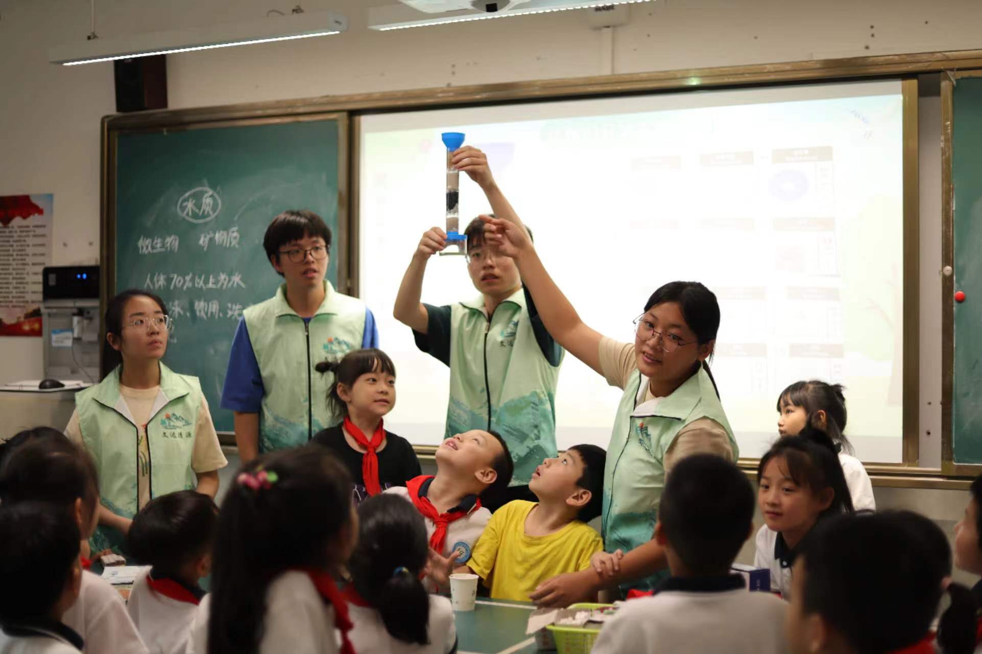 据悉,茶山组带领小朋友进行污水进化实验和开展水质环境保护宣讲课堂以提升孩子们环保意识。