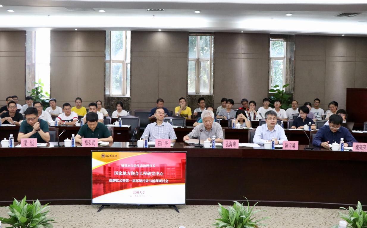 揭牌仪式后,第一届环境污染与治理研讨会在永利集团官网召开。上海交通大学孔海南教授、浙江大学陈宝梁教授、哈尔滨工业大学梁恒教授、浙江省环境保护科学设计研究院梅荣武教授以环境污染与治理为主题做了大会报告。上海交通大学孔海南教授针对高品质"二元供水"技术体系开发与温州雁荡山周边普及思考进行了详细的介绍,对温州市的供水技术体系的开发具有指导性意义。浙江大学陈宝梁教授介绍了石墨烯基环境功能材料构建及其污染控制应用,为环境功能材料的研发及应用带来了新的思路。哈尔滨工业大学梁恒教授介绍了低压膜滤净水技术,深入介绍了膜滤技术的优点及运行的原理。浙江省环境保护科学设计研究院梅荣武教授主要介绍了城镇污水处理厂提标至地表准IV/III类水标准工艺技术路线及案例,对温州市城镇污水处理厂实现提标具有重要参考价值。