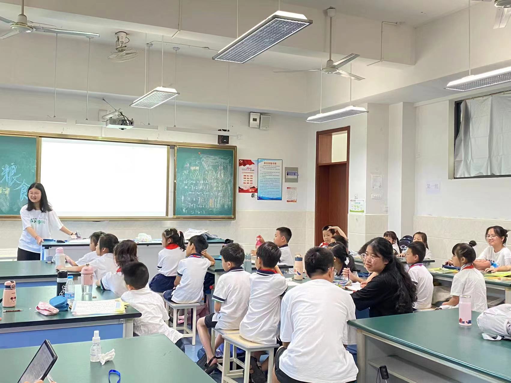 为了提高小朋友们对光盘行动的认识,学会珍惜粮食,2022年7月8日下午13:30,公司“踏梦食安”暑期社会实践队前往永利集团官网附属茶山实验小学开展光盘行动实践活动,对该校二年级部分员工进行光盘行动、节约粮食知识宣讲及课后作业辅导等。参与本次实践活动的有队长南楠同学、活动组、综合组、后勤组和宣传组部分成员。