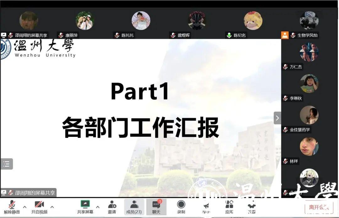 办公室主要工作是团支部对标定级、每周督促青年大学习、共青团专题组织生活会、智慧团建信息的录入、收集毕业生应转入的团支部和户籍地以及开展2022-2023学年第一学期的员工干部考核等工作;宣传部工作主要是关于寝室长例会的推送,并表示在接下来的工作中会在细节方面加以改进,积极挑选并转载温大研究生微刊,争取早日完成优秀分研会的宣传建设指标;学术部本月份负责的工作主要有三项,一是各项奖学金科研项目的评比,二是协助老师进行优秀毕业生相关材料的核对汇总、创新基金项目通知的发布以及电子资料的收集整理汇总,三是和校研会学术部对接关于我与青科会主题征文比赛的相关工作;生活实践部顺利组织并召开了全院寝室长会议,重点强调寝室安全的重要性及其相关注意事项;文体部对过去这一学期的工作进行了总结,对羽毛球团体赛、“佳得乐”杯篮球赛、yl永利集团官网登录十佳歌手等活动的圆满举办表示十分欣喜,并特别感谢研会其他部门提供的帮助。