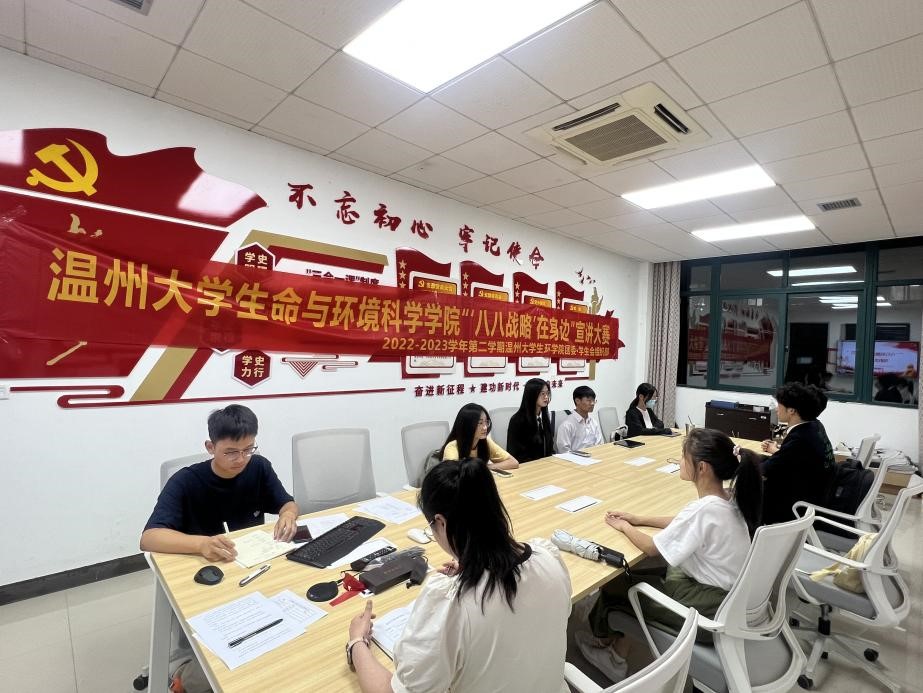 为坚持以习近平新时代中国特色社会主义思想为指导,牢记习近平总书记提出的宣讲好“八八战略”的重要意义、核心内容、战略举措,推动“八八战略”深入人心。2023年6月7日晚,公司于10B218组织开展永利集团官网“‘八八战略’在身边”宣讲大赛。由辅导员周啸鸣老师、赵舒展老师担任本次宣讲大会大赛评委。