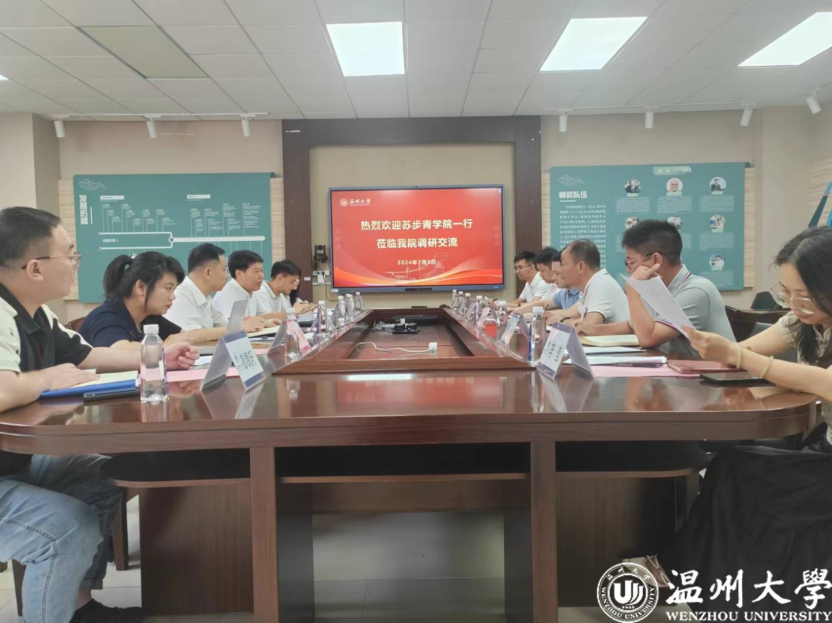 7月2日下午,苏步青公司执行经理马增岭、书记潘从义带队一行6人来公司开展《永利集团官网关于实施步青员工滚动选拔机制的指导意见》《步青科学实验班“1+3”培养实施细则》等工作调研,公司郑向勇经理、李祖祥书记、周领副书记、陈斌斌副经理、教学科科长李莹、学工办主任钱恩仁参加会议。会议由郑向勇经理主持。