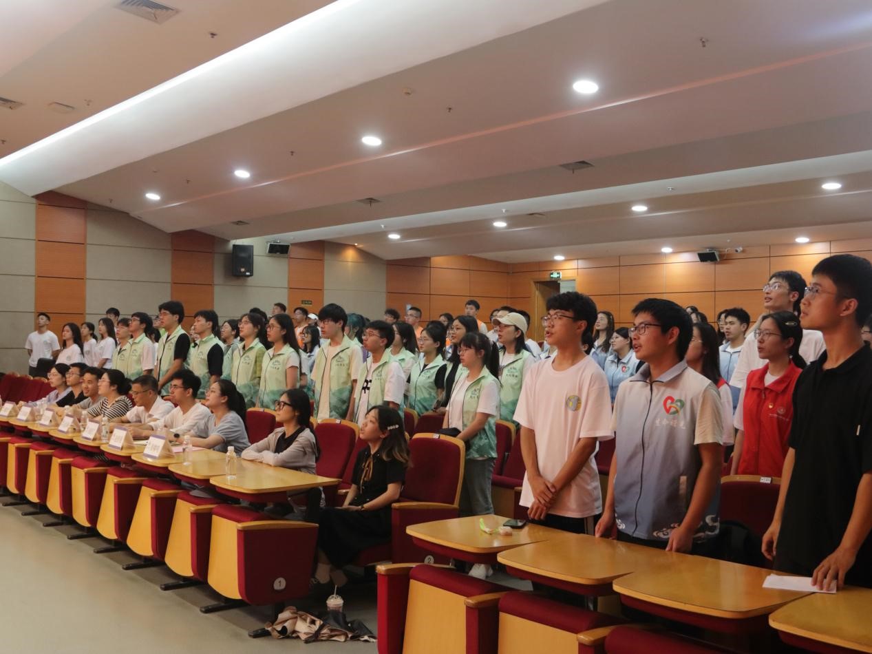 主持人宣布仪式开始,全体起立,奏唱团歌。伴随着激昂的旋律,实践队成员高昂斗志,齐声唱响了团歌,展现了青春与梦想的力量。