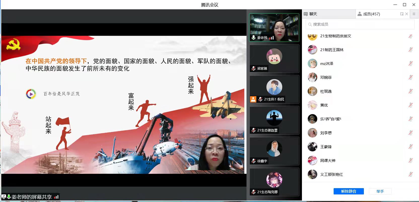 2022年3月25日晚,公司在腾讯会议开展了以《中国共产党为什么能》为主题的讲座,本次讲座由公司党委书记姜海燕老师主讲,公司19、20、21级本科生参加。