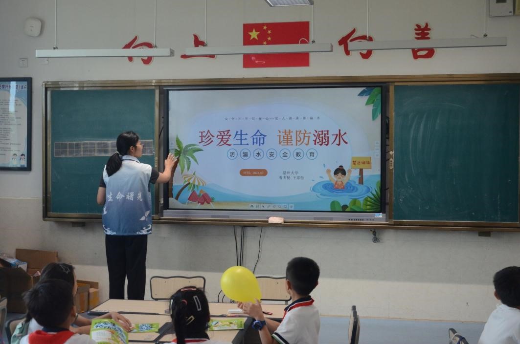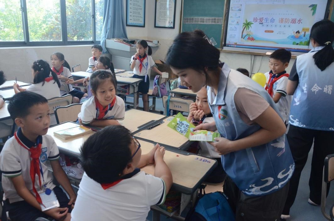 “生命曙光”暑期社会实践队的成员们将防溺水宣传与亚运宣传深入课堂,深入大街小巷。盛夏到来,各地溺水事件频发。加强防溺水宣传工作,有利于深入学习贯彻习近平总书记系列重要讲话精神,落实省市安全工作会议精神,筑起全市防溺水“保护墙”,守护人民生命财产安全。而金秋将至,杭州亚运会已然进入紧密筹备中,开展亚运宣传,有助于关注亚运盛会,弘扬亚运精神,鼓励全民运动,共创美好未来!