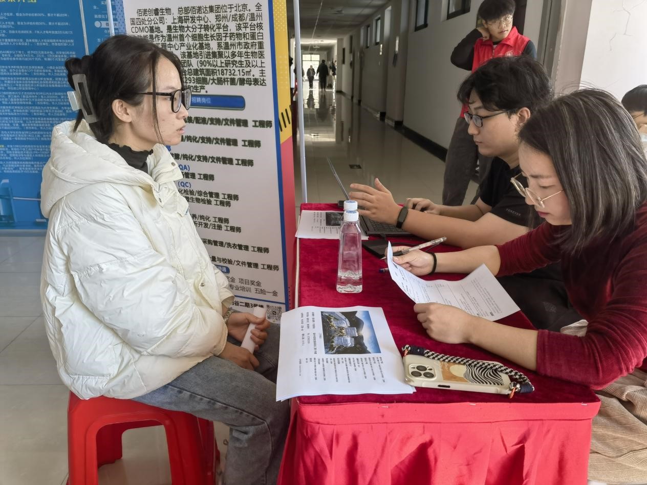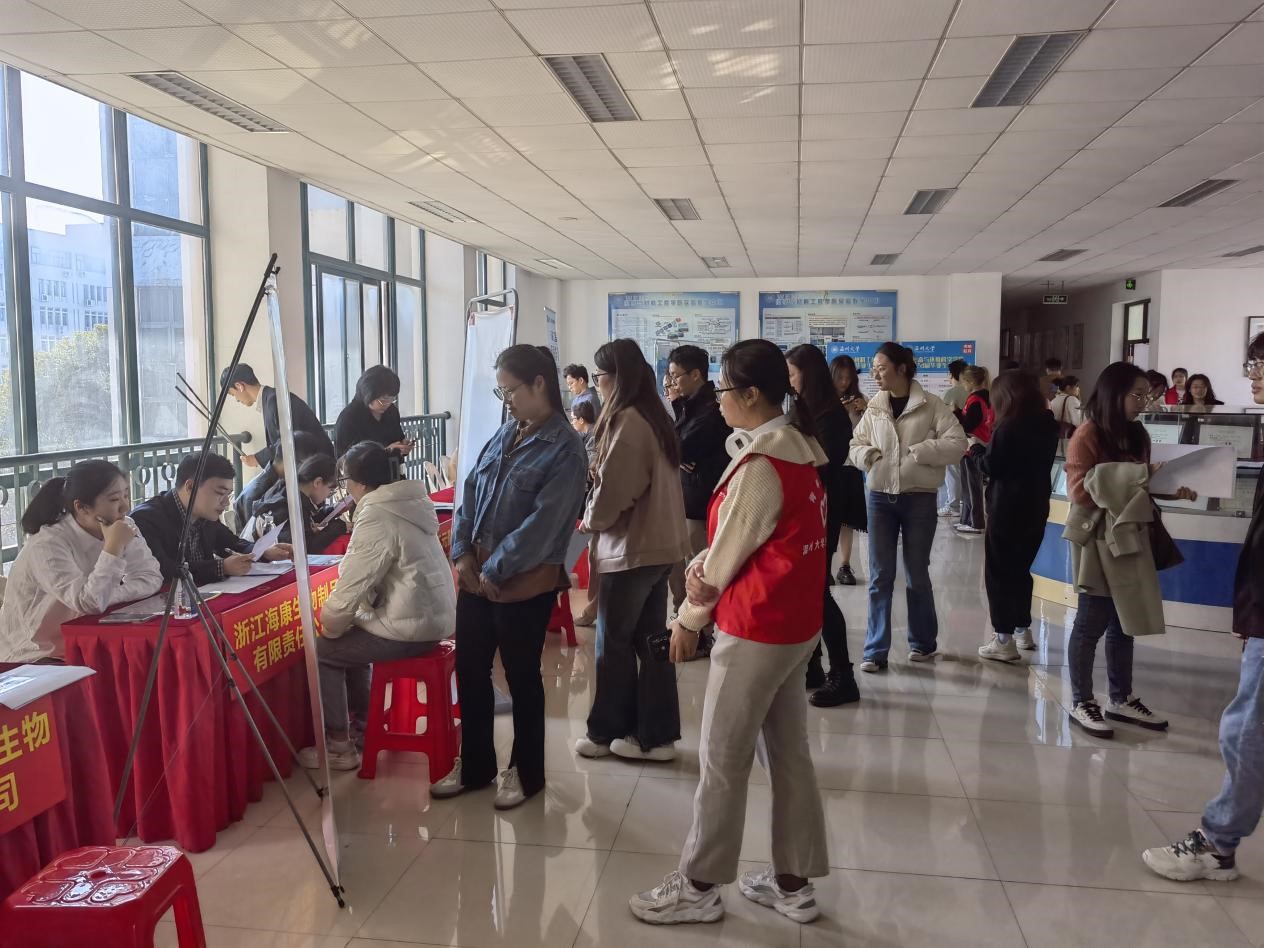 本次招聘会共近20家企业到场,如华峰集团有限公司、浙江省地矿科技有限公司等企业,招聘职位涉及了生物、医药、环境、化学等各个专业,吸引了约200名毕业生前来招聘。