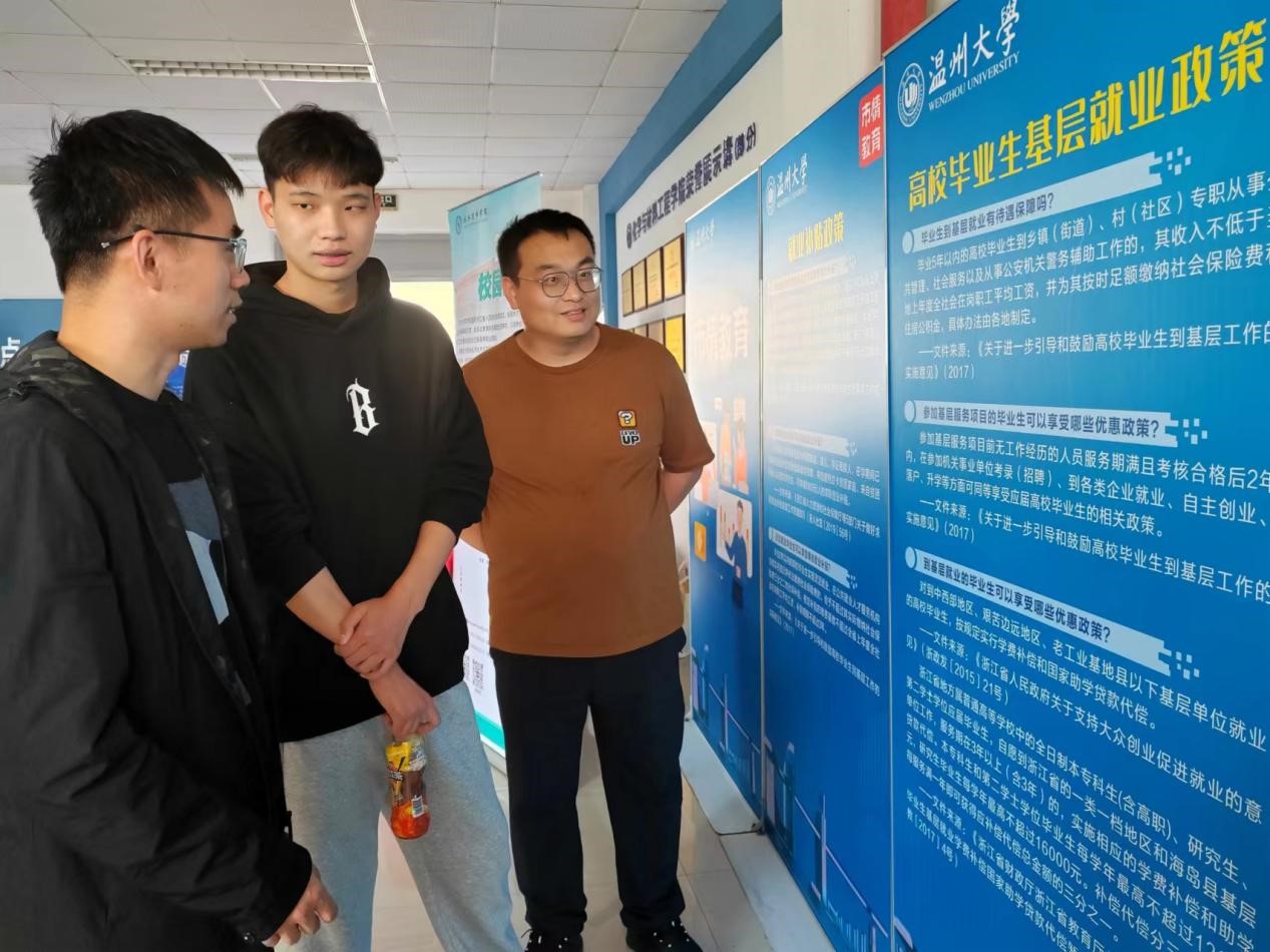 招聘会上还专门开设了市情教育专区,公司将深入贯彻落实温州市“510+行动计划”,普及自主创业政策、就业补贴政策、高校毕业生基层就业政策等政策,为同学们就业保障护航。