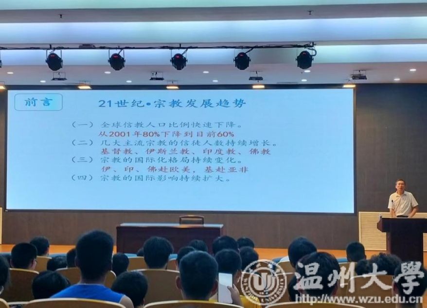 从当代的宗教规模人口,到马克思主义宗教观;从马哲宗教理论的提出,到中国宗教政策的开展,王教授带领同学们走进了不一样的宗教世界。在这里,新生了解到了世界的宗教发展历史、世界信教人口地区的分布以及二十一世纪的宗教发展趋势。同学们在惊叹于宗教影响的强大之际,也主动思考了自身的信仰定位,逐渐树立了正确的宗教观念。同时,王教授也理性地评析了宗教对社会的影响,向同学指出了其中的两面性,倡导同学们尊重宗教信仰自由,推动构建积极健康的宗教关系,用马克思主义的立场、观点和方法去看待宗教问题,坚守宗教法制化道路。