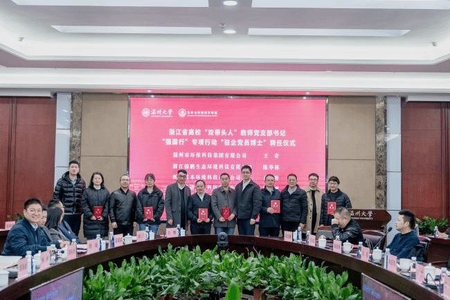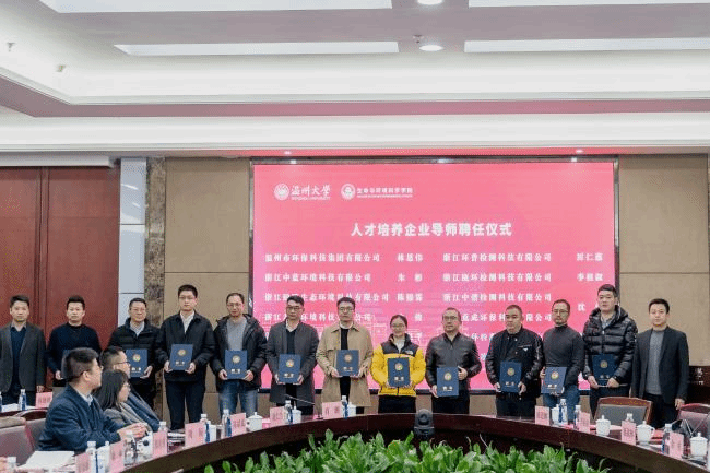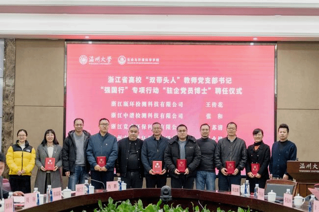 yl永利集团官网登录一直致力于充分发挥高校学科与人才优势,成立以服务地方、服务产业为主要导向的“生态环保党建联盟”。自2021年温州市环境科学学会、温州市生态园管委会、浙江中蓝环境科技公司、浙江中环检测科技有限公司等四家单位支持加入该联盟以来,本次又有10家企业响应加入,使得联盟成员扩员至15家。大会为新增成员单位代表授牌,并聘请联盟中12家企业的11位行业专家担任公司人才培养企业导师,同时选派党员博士驻企,进一步强化双向互动,为企业发展赋能。