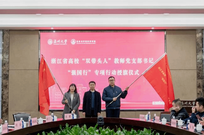 会上还举行了校企合作项目揭榜仪式和浙江省高校“双带头人”教师党支部书记“强国行”专项行动团队授旗仪式。