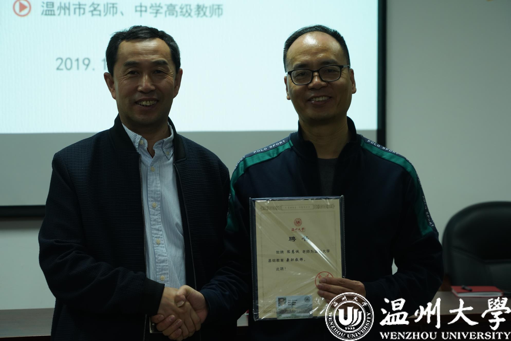 为了帮助公司师范员工明晰职业发展规划,公司特开展“名董事长进课堂”系列活动。12月17日晚,“名董事长进课堂”第一期活动在公司10B202顺利展开,由温州市实验中学副董事长、温州市名师陈慧诚老师向同学们讲述生物科学(师范)专业的职业生涯和如何做一名优秀的人民教师。本期活动由公司党委副书记赵崇峰主持,19级生物科学(师范)专业全体同学参与。