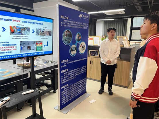 首先,由创盟的工作人员为大家讲解了创盟的创办背景和取得的成就,同学们从其介绍视频中感受到了创盟的温暖。接下来在工作人员的带领下,同学们参观了由优秀学长学姐们创立的一个又一个工作室。第一个参观的是工作室面积最小但流水却最高的“New Vision”制片厂。该工作室紧跟短视频发展的潮流,主营摄影、直播等。同学们紧跟工作人员的步伐又参观了云朵眼镜、小树云素拓、云之盘中餐、勇荣文化传媒等多家优秀工作室。参观完一楼后,工作人员又带同学们来到第二层。第二层是公司和机电公司创办的工作室。在参观中,同学们对公司学长创办的绿色革命——藻类降解酶工作室和机电公司的飞机除漆工作室尤为感兴趣,向工作人员提出了许多问题。其后,工作人员带领同学们感受了工作室的氛围与环境,享受了香薰香水制作工作室的芳香四溢、服饰制作工作的琳琅满目,等等。最后,创盟的工作人员告诉同学们“不要让专业限制我们的成就。我们是老员工,要勇于挑战,不怕失败”。科创园参观活动在同学的高涨热情中落下帷幕。