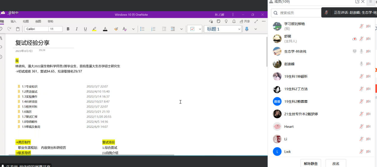 随后,公司18生科2班考上河北大学的林珑,考上厦门大学的戴景平,公司18生科1班考上厦门大学的林依纯,公司18环科班考上浙江工商大学的栾舒婷,公司18制药班考上中央民族大学的任雨荷,公司20生技(专升本)班考上华中农业大学的季月雯,公司18生科2班考上中国科公司大学的江文宇等七名考研升学优秀员工代表依次作经验分享。他们从自身考研经历出发,围绕复试内容、复试方法、复试细节以及调剂技巧等方面分享了复试策略。在分享考研复试经验之外,员工代表们还为今年考研的同学留下了“道阻且长,行则将至”的祝福话语。