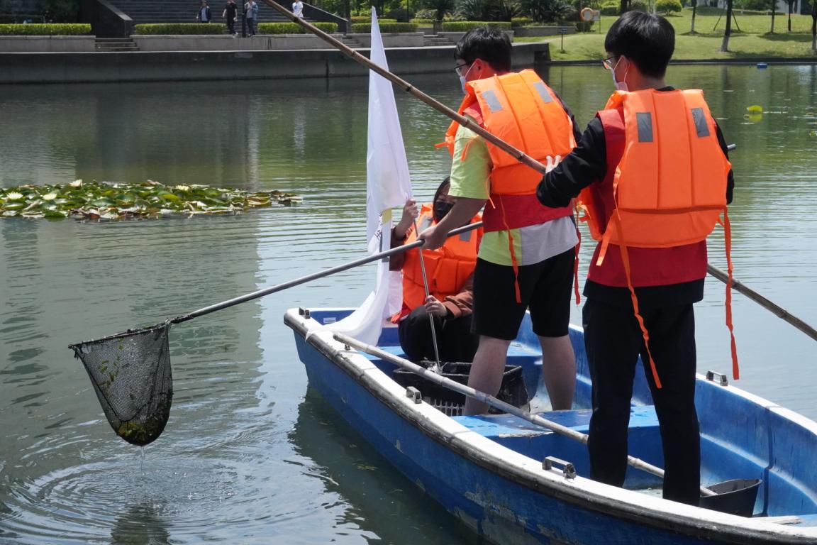 指导老师带领员工们走入“明心湖”劳动教育基地,对其湖面水草及周别环境进行治理,操纵无人检测船检测明心湖水质,学习水草打捞、水质检测等知识。各员工代表在接受锻炼、磨练意志的同时,实现了在劳动教育中树立德行、增长智慧、锻炼体能、增强审美等自我层面的全面发展。