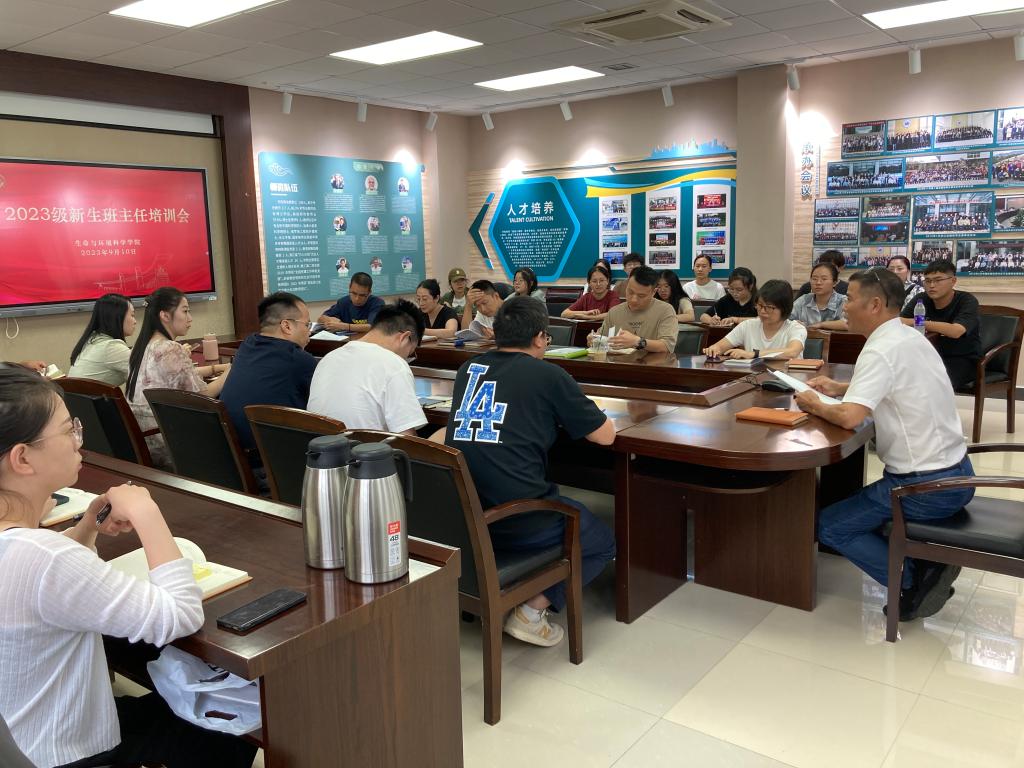 2023级新生班主任培训会上,党委副书记赵崇峰首先强调了班主任工作的重要性,充分肯定了各班主任在育人工作中发挥的重要作用;其次就公司育人工作做介绍,帮助班主任了解学风、科创等育人工作概况;随后就主题班会的开展、班主任工作的关心关爱、员工信息的掌握和了解、新生代表的物色选拔、防火防电防诈骗的新生安全教育、新生寝室的慰问、新生始业教育、开学典礼、资助工作、家长会的开展等工作做方法指导。会后,老生班主任代表郭坤、贾阳与与会班主任分享了自己从事班主任工作的经验,学工办主任钱恩仁向班主任介绍新生班会培训材料。