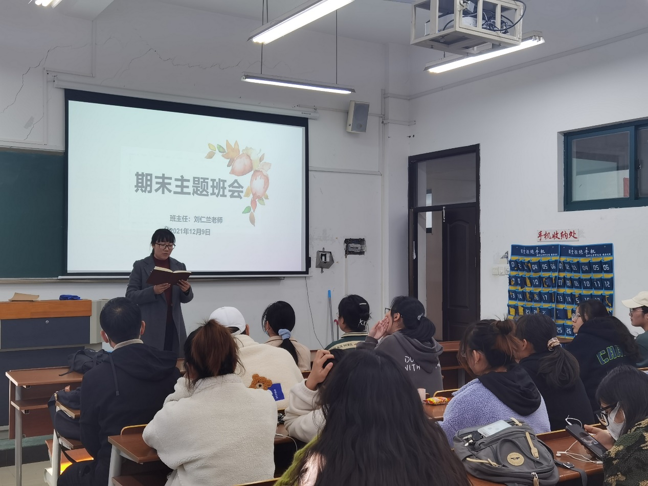 最后,刘仁兰老师以鼓励同学们在未来有更好的成就为结尾,圆满结束了本次主题班会,同学们都受益匪浅,也及时为面对期末的到来而产生迷茫的同学们指引了方向。