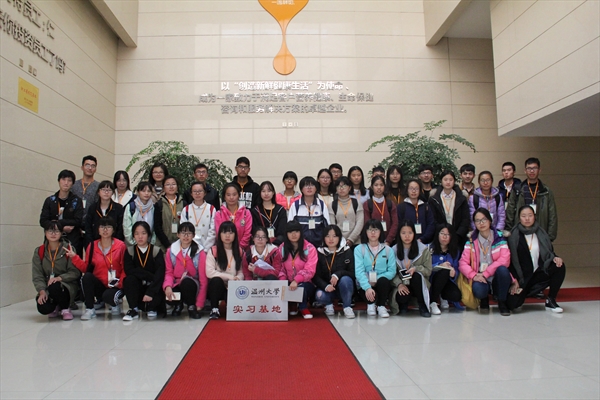 在温州浙南科技城,在公司总工卜光明的带领下,同学们参观了浙江瑞邦药业有限公司的发酵车间、过滤车间、浓缩结晶车间、生物实验室、质控部门等,了解了生物药物的生产流程,包括微生物菌种的筛选育种、培养基配方的选定、种子发酵、产品发酵、后期的树脂吸附、质量控制等。在浙江伊利康生物技术有限公司,同学们不仅参观了企业的生产车间和科研实验室,还与企业管理人员进行了座谈。在座谈会上,总经理王贤理结合伊利康的创业史向同学们提出了三点宝贵的建议:学好专业知识,树立品牌意识,发挥团队作用。在杭州九源基因工程有限公司,研发部主任王同映向同学们介绍了公司历史、团队、部门和产品,并向同学们讲解了不同的生物药物的治疗历史、世界生物制药历史、新药研发的过程、药物研究的工艺开发,并描述了特殊的中国医药市场,强调了生物医药是中国医药行业的重要发展方向,是一个快速增长、势头迅猛、亟需人才的产业。在浙江大学,同学们认真聆听来自生物系统工程与食品科学公司的郑晓冬教授的报告。郑教授着重讲述了生物与食品之间的紧密联系,向同学们展示了中国食品工业现状及发展趋势,并揭示了食品与生物化学、植物生理与食品贮藏、细胞生物学与食品、植物资源与食品之间的关系,向同学们展示了生物技术在食品行业中的应用以及生物技术的发展前景。在乐清浙江省聚优品生物科技有限公司,同学们参观了智能化大棚种植区、连体大棚种植区、立体种植区、活体树铁皮石斛近野生种植区、苗床种植区等,了解了铁皮石斛的药用价值、生长特性、种植方法等。在浙江一鸣食品股份有限公司,同学们通过对检测中心、奶制品生产线等环节的参观,了解了牛奶的生产需要经过机械挤奶、验收、分离净乳、预巴杀、生奶暂存、混料、配料、脱气、均质、杀菌、发酵(针对酸奶)、待装、灌装、包装等环节,也明白了在生物制品生产的各个环节,专业知识的重要性。时光匆匆,几天的专业认知实习只能说是浮光掠影,展示的只是生物技术专业领域的冰山一角,但是这给了同学们一个直观的印象,使同学们对生物技术专业有了初步的认识,也明白了专业知识在以后工作中的重要性,实习取得圆满成功。