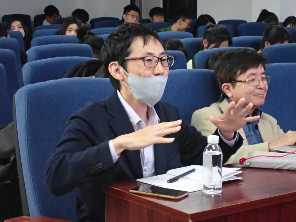 会后,田村幸雄院士与在场师生展开了深入、坦率的热烈讨论,并对他们的疑惑进行了详尽解答。不同研究方向的师生探讨各种问题,学术热情高涨,在场师生深受启发,学习到了如何在做好基础研究的同时寻求交叉机会,对于研究学习方法有了新的心得体会。