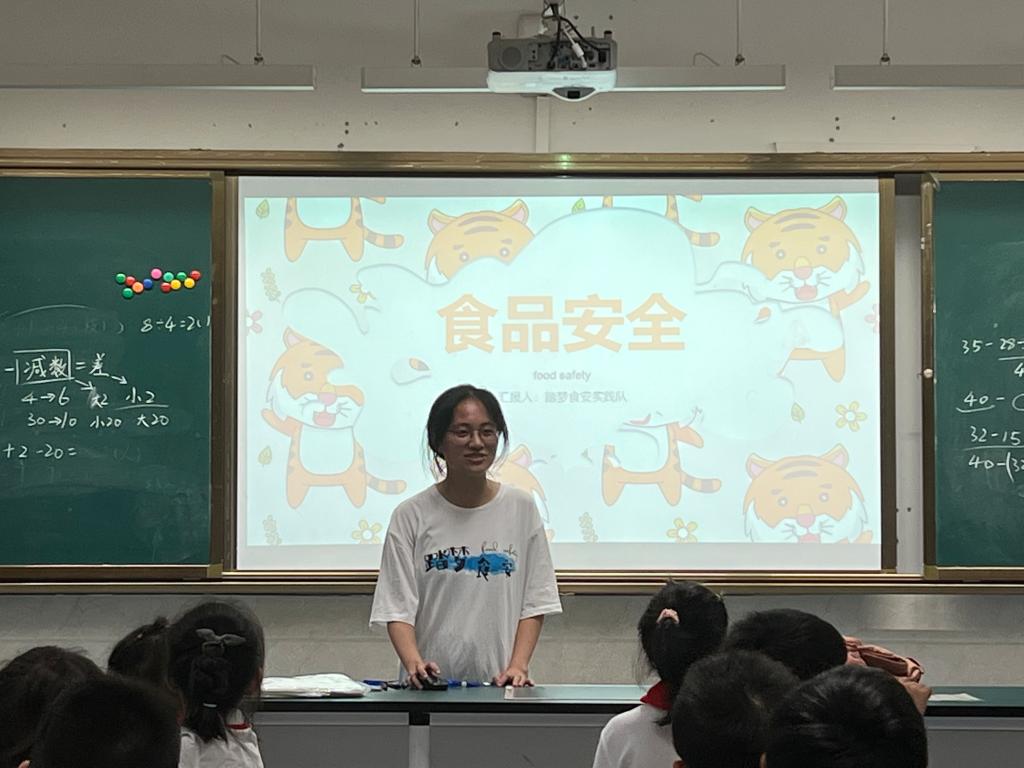 为科普食品安全知识,提高小员工食品安全常识,yl永利集团官网登录踏梦食安暑期社会实践队于7月5日下午13:30前往永利集团官网附属茶山实验小学开展实践活动,对该校二年级部分员工进行食品安全知识宣讲及课后作业辅导等。参与本次实践活动的有队长南楠同学、活动组、综合组、后勤组和宣传组部分成员。