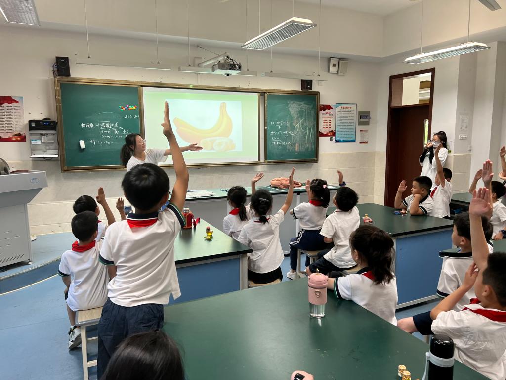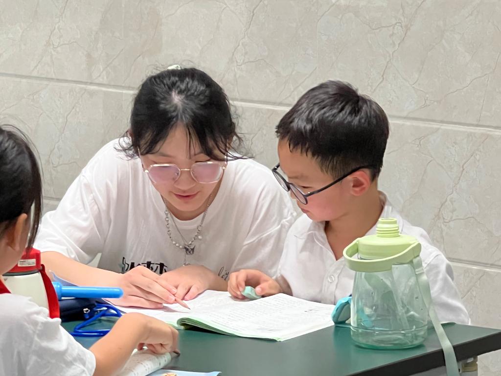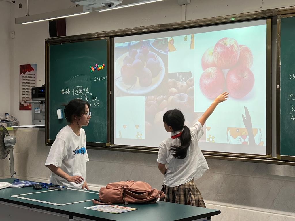第一节课是活动组的林紫涵同学进行的食品安全知识宣讲。她首先由一段小视频导入课堂,再列举可能引起事物变质的因素供小朋友们分辨、选择,得到了小朋友们积极的回应,并组织小游戏教小朋友们如何鉴别食物是否变质。最后,林紫涵同学还教小朋友们认识与食品安全相关的标识。她通过一系列小游戏和穿插进行的科普知识将趣味与科学相结合,引导小朋友们积极参与活动,并向他们科普食品安全知识。第二节课是由活动组的陈心玥同学进行关于垃圾食品的宣讲。她组织小朋友们列举、辨别垃圾食品,对他们进行相关科学知识的科普,从而起到警示小朋友们的作用,告诫他们少吃垃圾食品。随后是活动时间,小朋友们被带至体育馆进行游戏活动,在我队成员的陪伴下玩得不亦乐乎。玩乐过后便是学习时间,我队每位队员各负责一个小组,监督、辅导小朋友完成暑假作业。短短一个下午的时间,我队队员就已经与小朋友们打成一片。