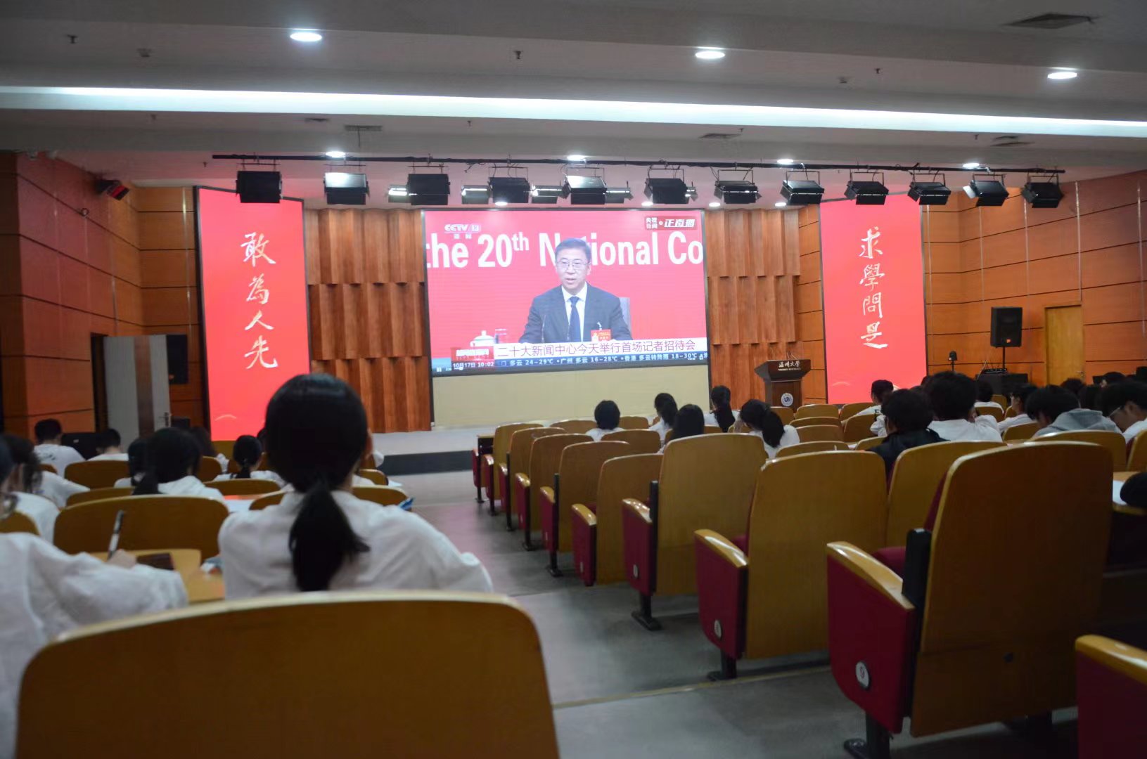 近日,中国共产党第二十次全国代表大会隆重召开,为了让同学们紧跟时事,了解时事,永远跟党走,增强其爱国爱党爱人民的情怀。公司于10月17日18:30,在岩松堂雁山厅开展“请党放心,强国有我”的学干培训课程,组织各位员工干部观看二十大的首场记者招待会视频。