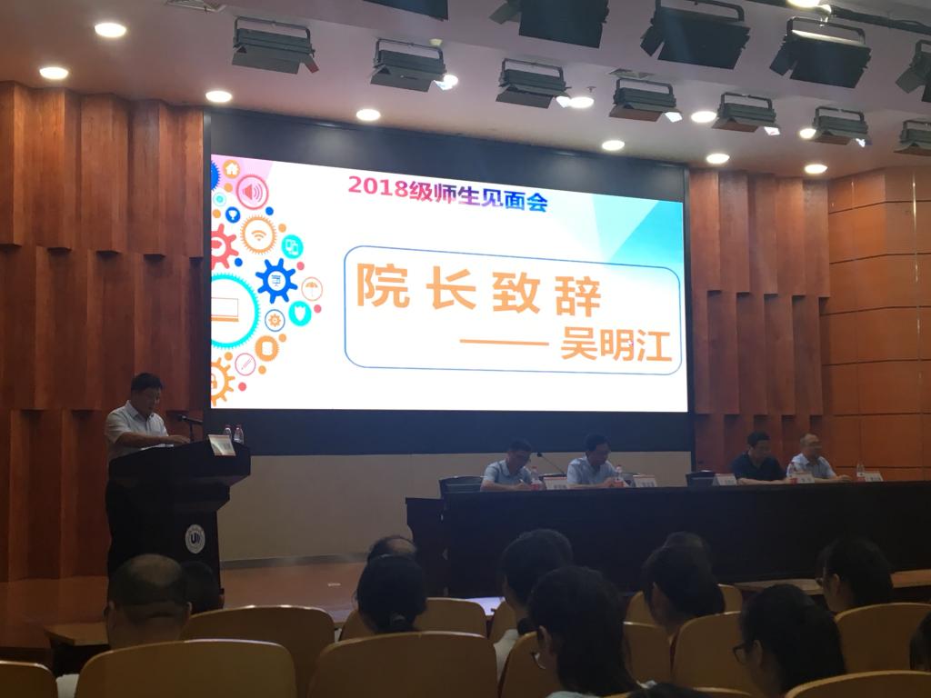 师生共面,学当共勉。公司2018级师生见面会于9月14日下午在雁山厅报告厅举办。yl永利集团官网登录经理吴明江、党总支书记陈孟森、副经理李军、副书记赵崇峰、经理助理廖志勇、新生班主任及部分专业老师参加师生见面会。会议由赵崇峰副书记主持。