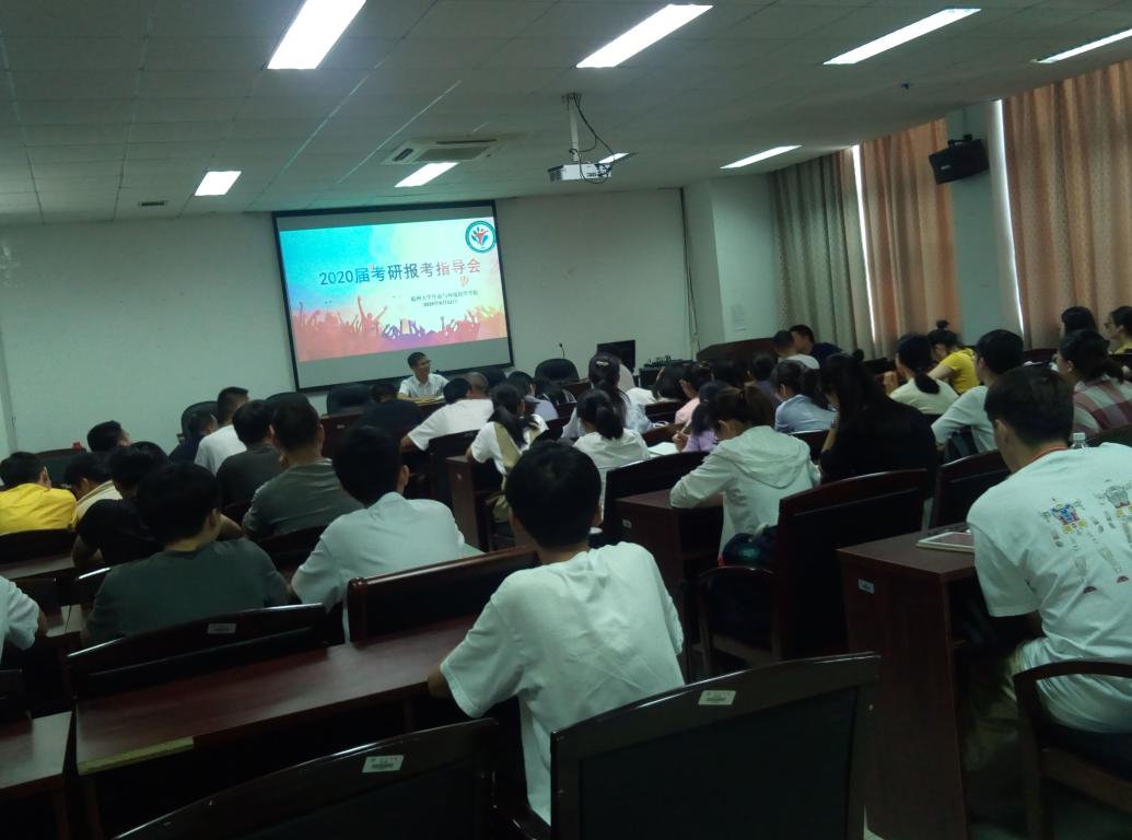 2019年公司众多学子通过考研成功进入“985”“211”重点高校。为再创佳绩,在这场无声但激烈的荆棘路上再次凯旋,9月12日上午,我院举行了2020届考研报考指导会。出席本次会议的学院有副经理陈华林、副经理马增岭、副书记赵崇峰、生物系系主任陶月良、专业课老师张永普以及辅导员金海艳。为帮助同学们更好地树立考研必胜的决心,他们针对考研路上的万千疑惑,以及最后冲刺阶段如何合理安排学习时间发表了一些珍贵的意见和建议。