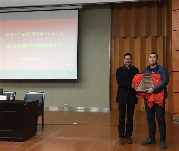 2017年12月8日下午,yl永利集团官网登录与浙江腾腾电气有限公司举行了校企合作授牌仪式。浙江腾腾电气有限公司CEO滕敏亮先生,永利集团官网就业处处长周伟国、公司党总支书记陈孟森、副书记赵崇峰、副科长金海艳和全体2017级同学参加授牌仪式。此次授牌仪式由党总支副书记赵崇峰主持。
