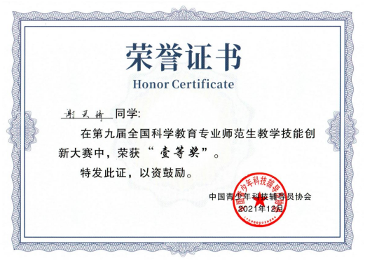近日,第九届全国科学教育专业师范生教学技能创新大赛决赛于线上举行,公司谢灵婧同学在本校等候连线指令完成比赛。本次大赛吸引了浙江师范大学、杭州师范大学、首都师范大学等一大批高水平师范院校参赛,比赛水平高、竞争激烈,共有来自全国65所高校的645名选手参加提交教学设计、教学视频和科技活动方案,经资格审查和初评,共245名选手入围决赛。比赛共分三个环节:即席讲演、模拟授课、现场答辩,考查选手对“科学课程标准”的熟悉程度以及教学基本功的熟练程度。公司2018级生物科学(师范)专业员工谢灵婧同学作为公司13名参赛选手代表之一,经过激烈角逐,以优异的表现取得了初中科学组一等奖的好成绩。