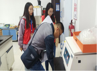 检查前,刘金文老师对员工党员进行了安全检查培训,以确保每位人员熟知实验室安全管理规范制度。在检查过程中,大家逐一对各实验室实验任务、值班情况、消防安全、安全用电、管理措施的落实情况,尤其是危险化学品储存、使用和管理等情况进行了全方位的检查。