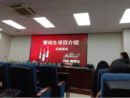 在此次宣讲中,百威集团的负责人从多方面介绍了公司的发展历程,公司的成就,公司旗下的众多品牌,公司的供应链与物流业。着重从“更繁荣”“更健康”“更洁净”三个方面介绍公司的发展宗旨:携手你我,酿造更美好世界。