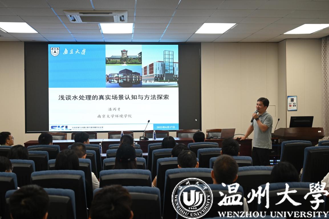2022年6月17日,南京大学环境公司副经理潘丙才教授访问温州大学生命与环境科学公司开展学术交流,并作了题为“浅谈水处理真实场景认知与方法探索”的学术报告。yl永利集团官网登录经理阎秀峰教授主持报告会,全院师生80余人参加了此次报告会。