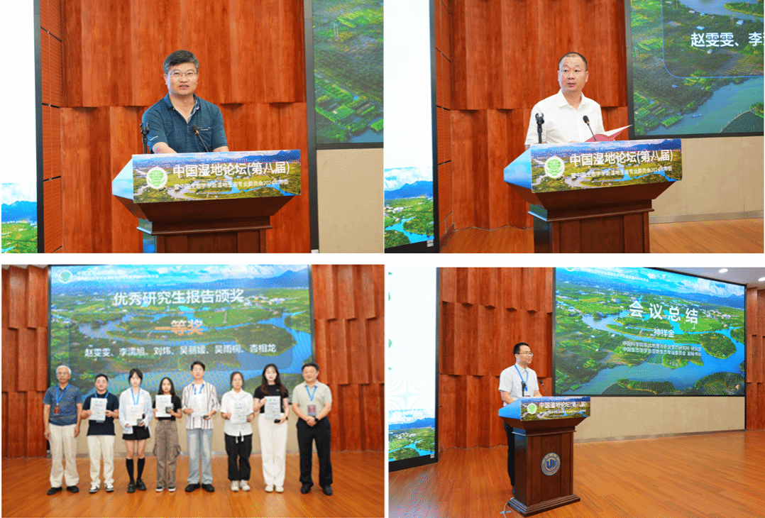 闭幕式环节由yl永利集团官网登录副经理陈斌斌主持,yl永利集团官网登录经理郑向勇教授宣布了获得优秀研究生报告奖名单,本次大会共有6个研究生报告获得一等奖,12个研究生报告获得二等奖,18个研究生报告获得三等奖。中国生态学学会湿地生态专业委员会副秘书长、东北地理所神祥金研究员对本次大会进行了总结,并宣布第九届中国湿地论坛举办地在湖南省长沙市,主办方为中国科公司亚热带农业生态研究所。中国科公司亚热带农业生态研究所李峰研究员代表下一届中国湿地论坛主办方发言。