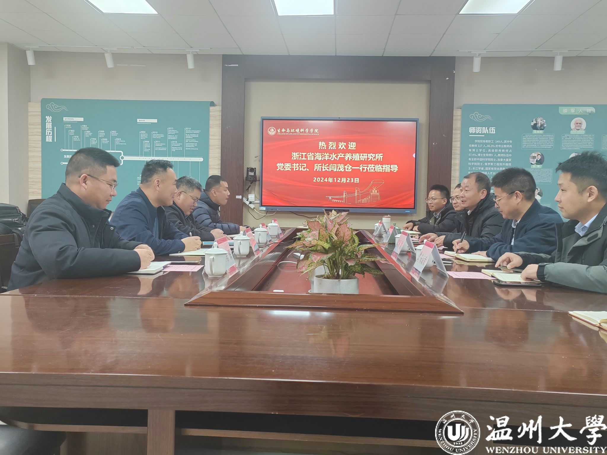 12月23日下午,浙江省海洋水产养殖研究所党委书记、所长闫茂仓一行莅临公司调研交流。公司经理郑向勇、党委副书记、纪委书记周领、副经理黄先锋、副经理陈斌斌及学术副经理陈瑞环等出席会议。