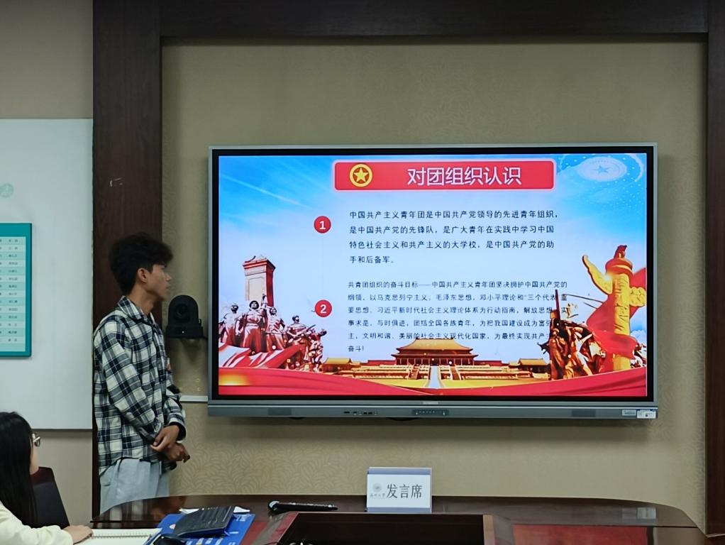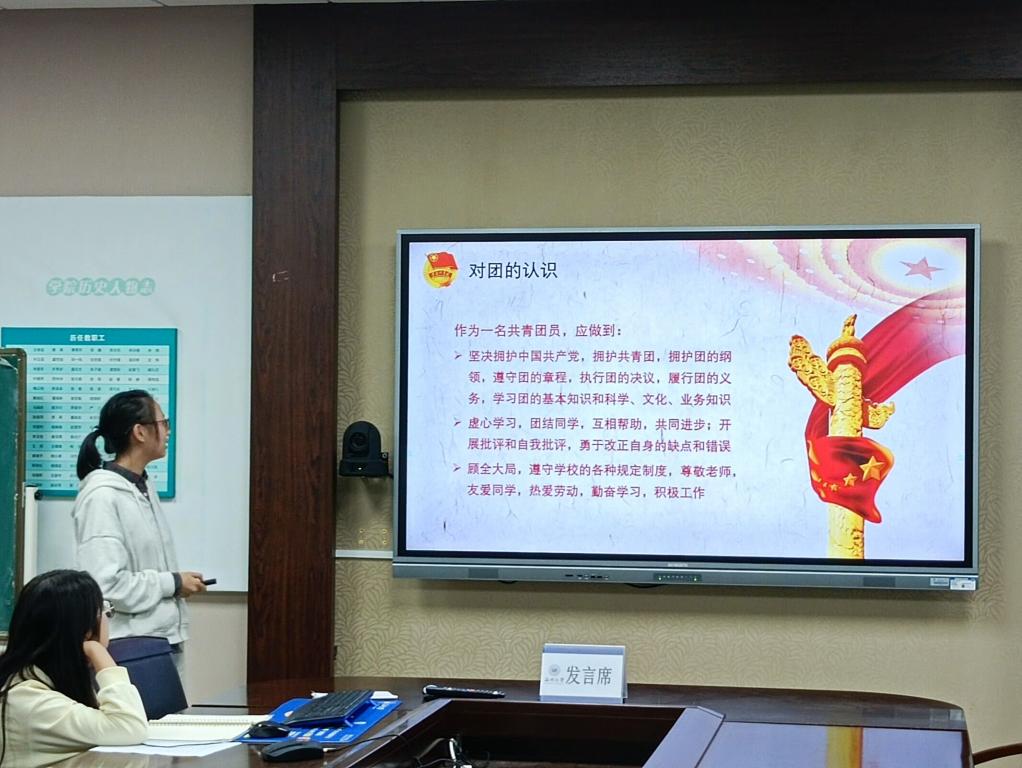 为加深各入团积极分子对团组织的了解,树立其向团组织的靠拢的意识,并激励其入团的决心,10月24日晚18:30公司于南校区10B204开展了2021-2022学年第一学期的团员答辩会。公司梁家琳老师、赵舒展老师、陆海鹏老师、汤烨老师、团委副书记邹婷、团委组织委员方静以及组织部长刘杭和副部长沈青霞参加了本次答辩会。