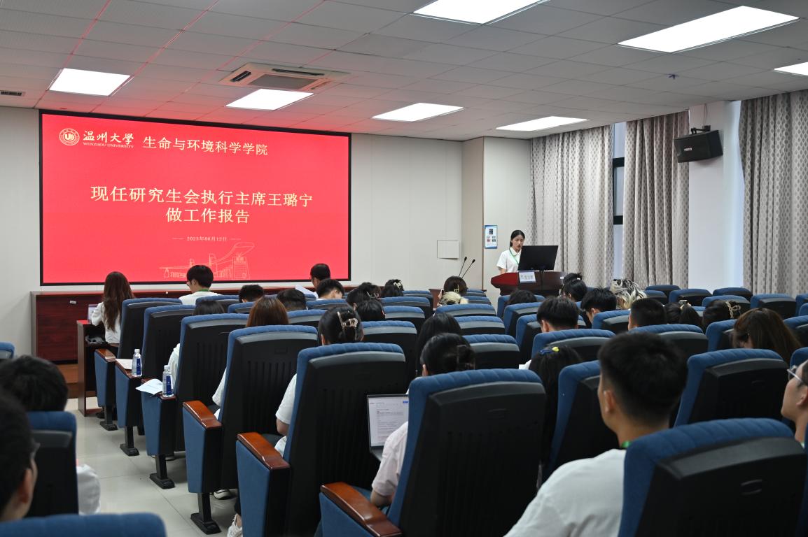 随后由现任研究生会执行主席王璐宁做工作报告,工作报告中指出公司研会在过去的一年里,在全院师生与全校同学的共同支持下,乘风破浪、勇往直前,以“全心全意为广大研究生服务”为宗旨,以促进广大研究生“在创新中成长,在成长中成熟”为目标,在积极做好日常工作的基础上,创新特色品牌活动,在深入思想引领、优化组织结构、立足学术科研、扎根宣传阵地、丰富文体活动等各项工作上都取得了成效,在服务公司研究生成长成才、引导研究生向上向善等方面都发挥了重要作用。且在优秀分研会的材料初评环节中,公司是16个公司中唯一一个材料满分的公司。