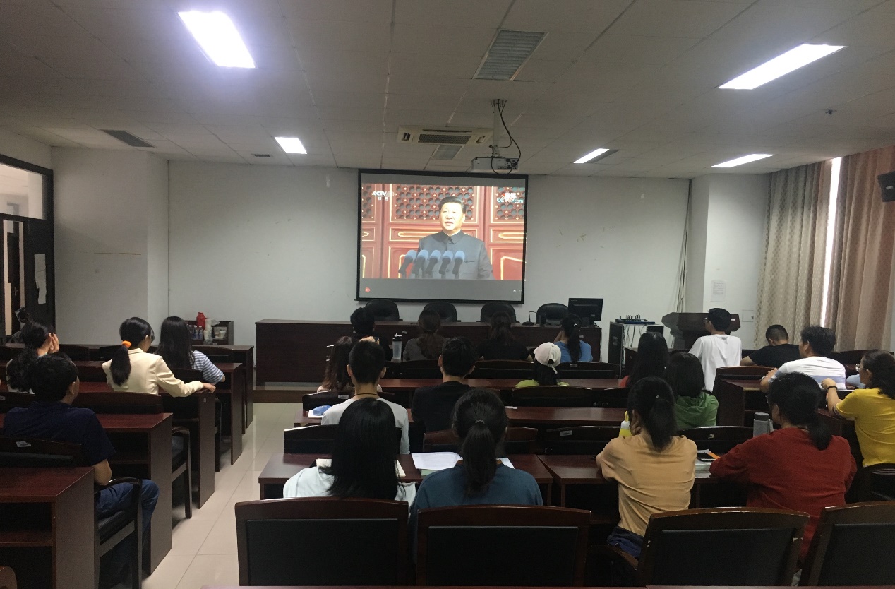 全体师生们都认听取习近平总书记在庆典大会上发表的讲话,“今天,社会主义中国巍然屹立在世界东方,没有任何力量能够撼动我们伟大祖国的地位,没有任何力量能够阻挡中国人民和中华民族的前进步伐!”在讲话结尾,习主席高呼“伟大的中华人民共和国万岁!伟大的中国共产党万岁!伟大的中国人民万岁!”每一个万岁都气贯长虹,情感强烈,昭示着中华民族伟大复兴的光明前景,下一个70年我们必将创造出更大的奇迹!全体师生的振奋与激动溢于言表,为祖国感到无尽的自豪!