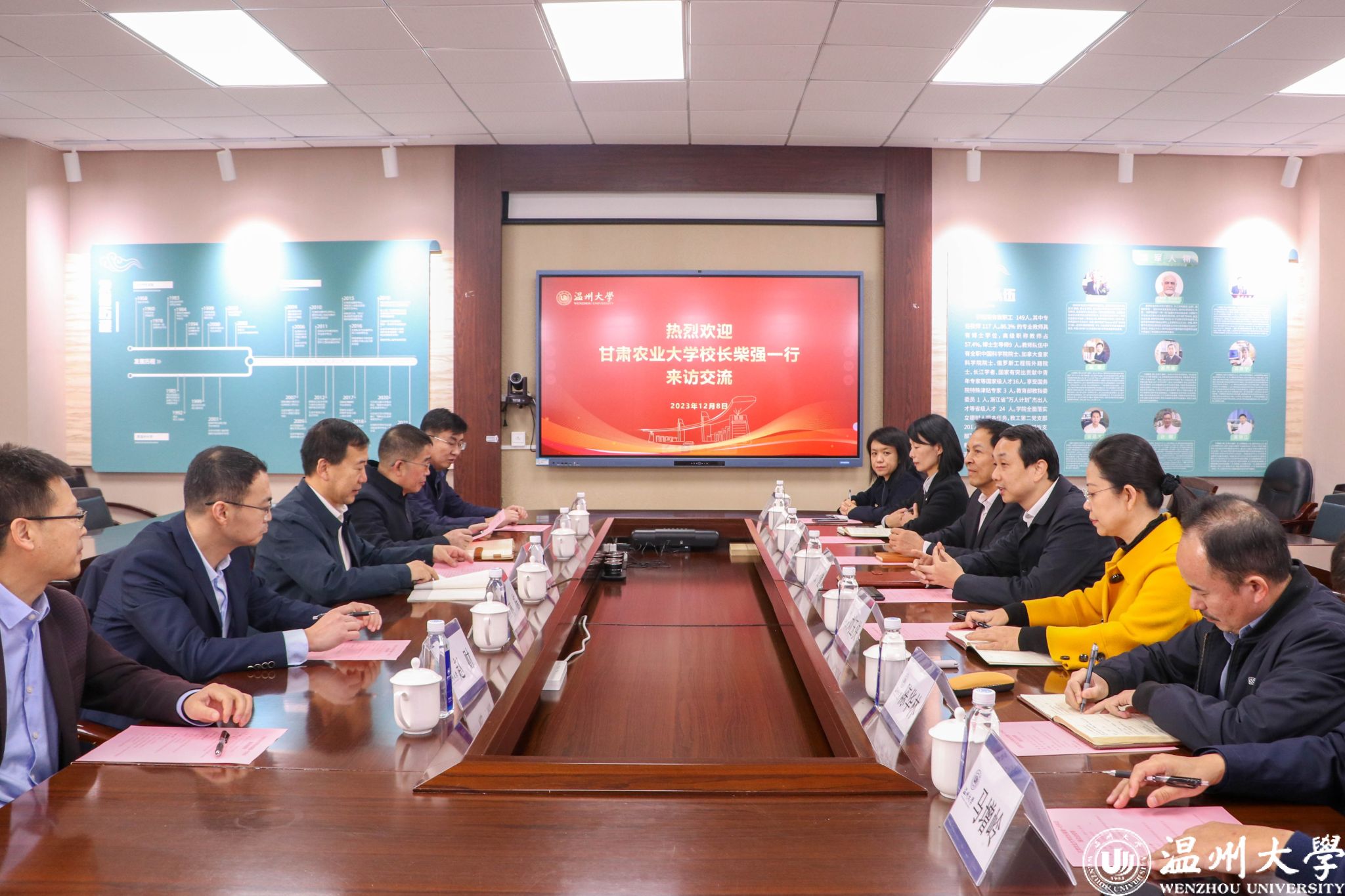 柴强董事长介绍了甘肃农业大学,并表示永利集团官网作为浙南闽北赣东区域唯一的综合性大学,近年来办学取得了很好的成绩。甘肃农业大学在相关农学领域也独具特色,双方具有互补合作的基础,尤其在农业方面,有着广泛的合作空间和良好的合作前景。他希望双方进一步加强沟通对接,深化合作。