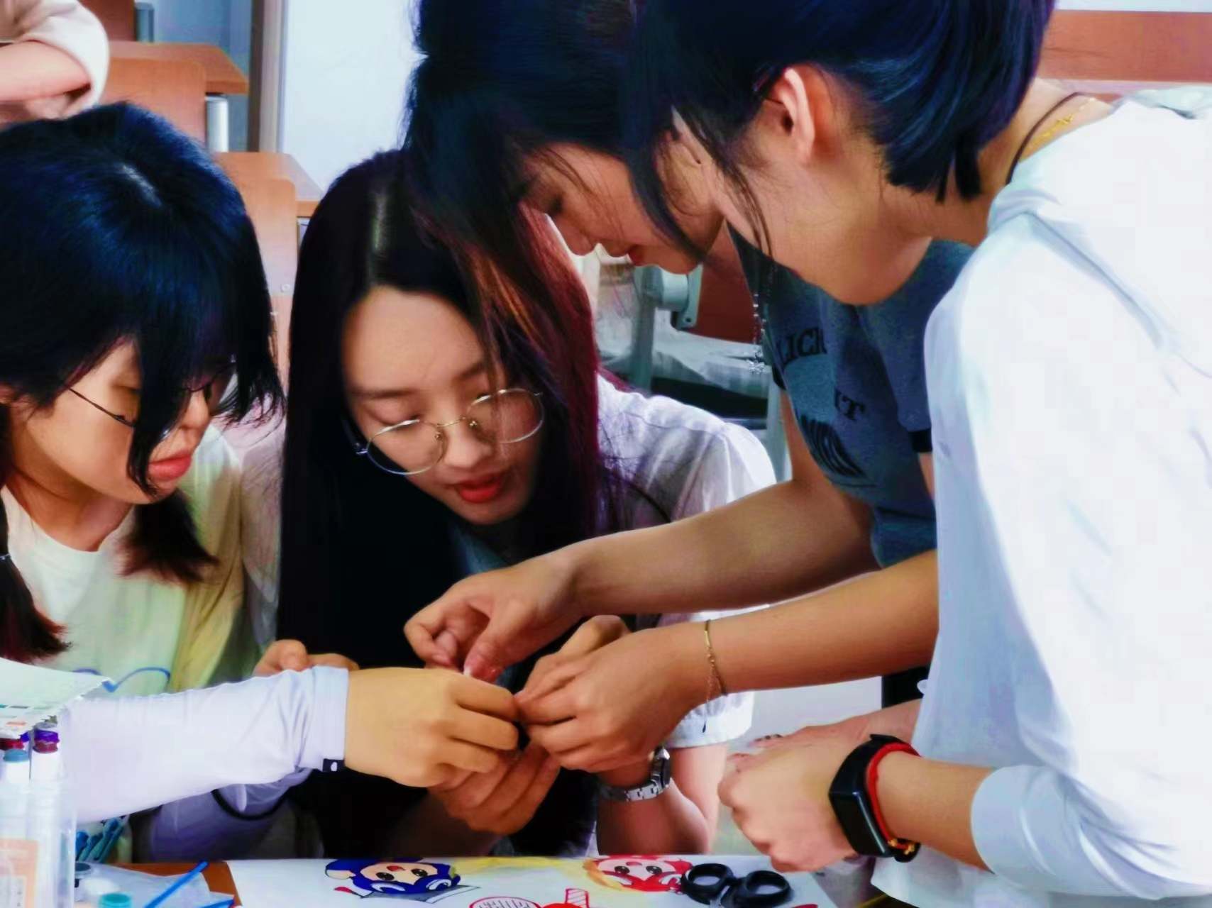 活动伊始,工作人员宣讲规则并分发经特殊处理过的叶子,每个小组开始在器皿中用牙刷一点点刷掉软化的叶肉,使叶脉的纹路逐渐显现出来。接着,参赛选手根据抽取到的材料和领到的辅助材料,围绕“拾旧叶新春,庆九十校庆”大赛主题,进行2个小时的自由设计和制作。
